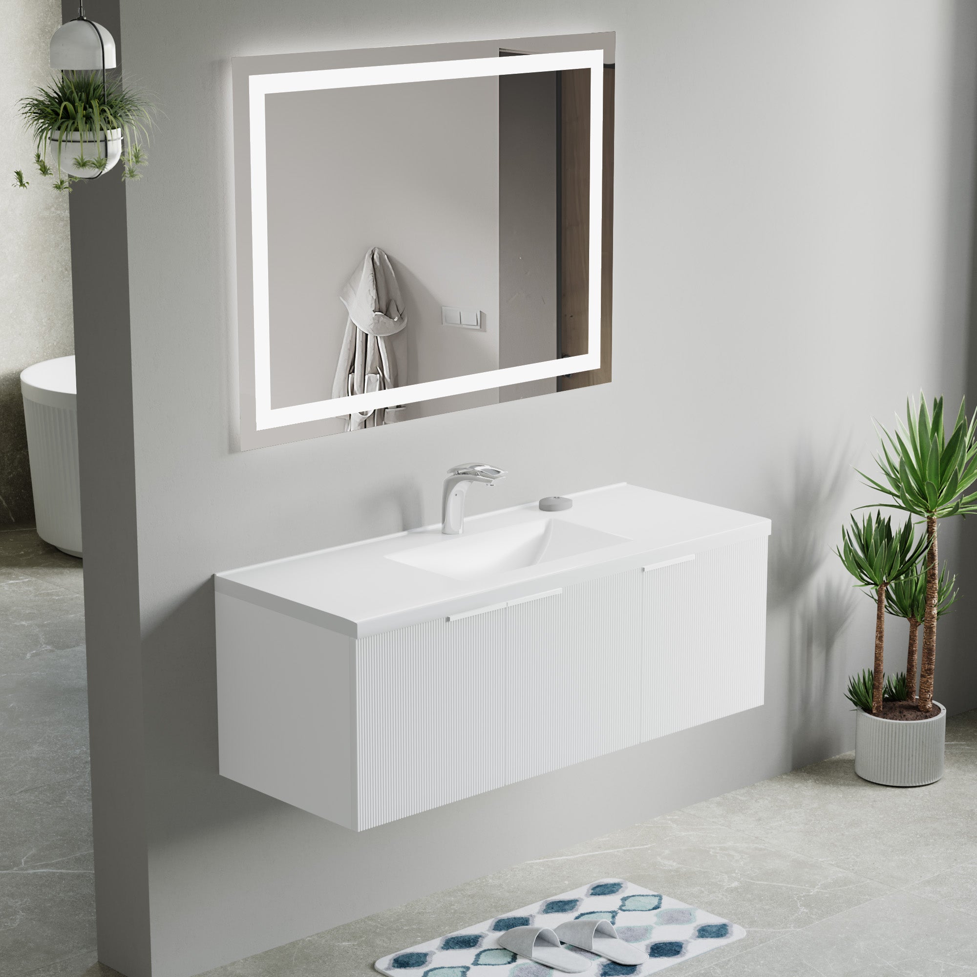 Dowell 48" Wall-Mounted/Floating Fluted Bathroom Vanity with Single/Double Basin – Three Soft-Close Doors - 032 48 Series