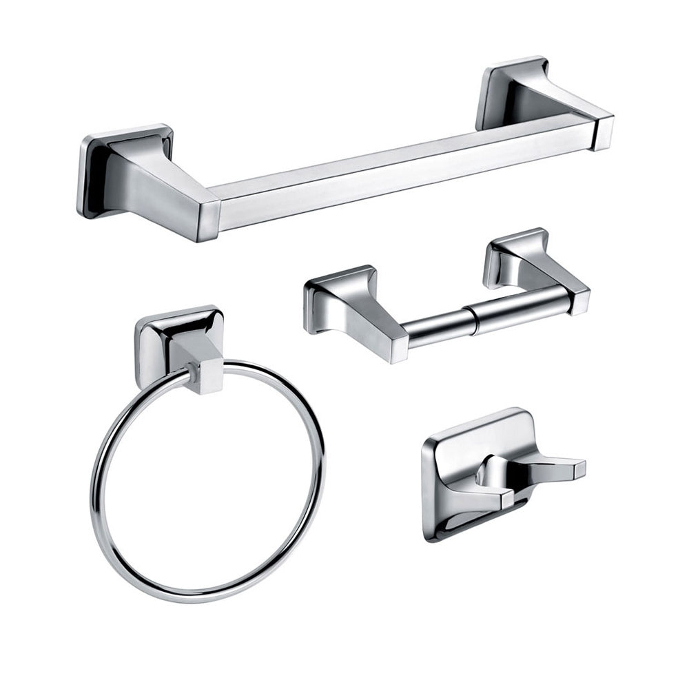 Dowell 1005 41 four piece bathroom squared design accessory set is an ideal way to upgrade any bathroom or powder room. Available in brushed nickel or black and made with zinc alloy and stainless steel, this set is a durable and attractive way to display bath towels, tissues, etc.