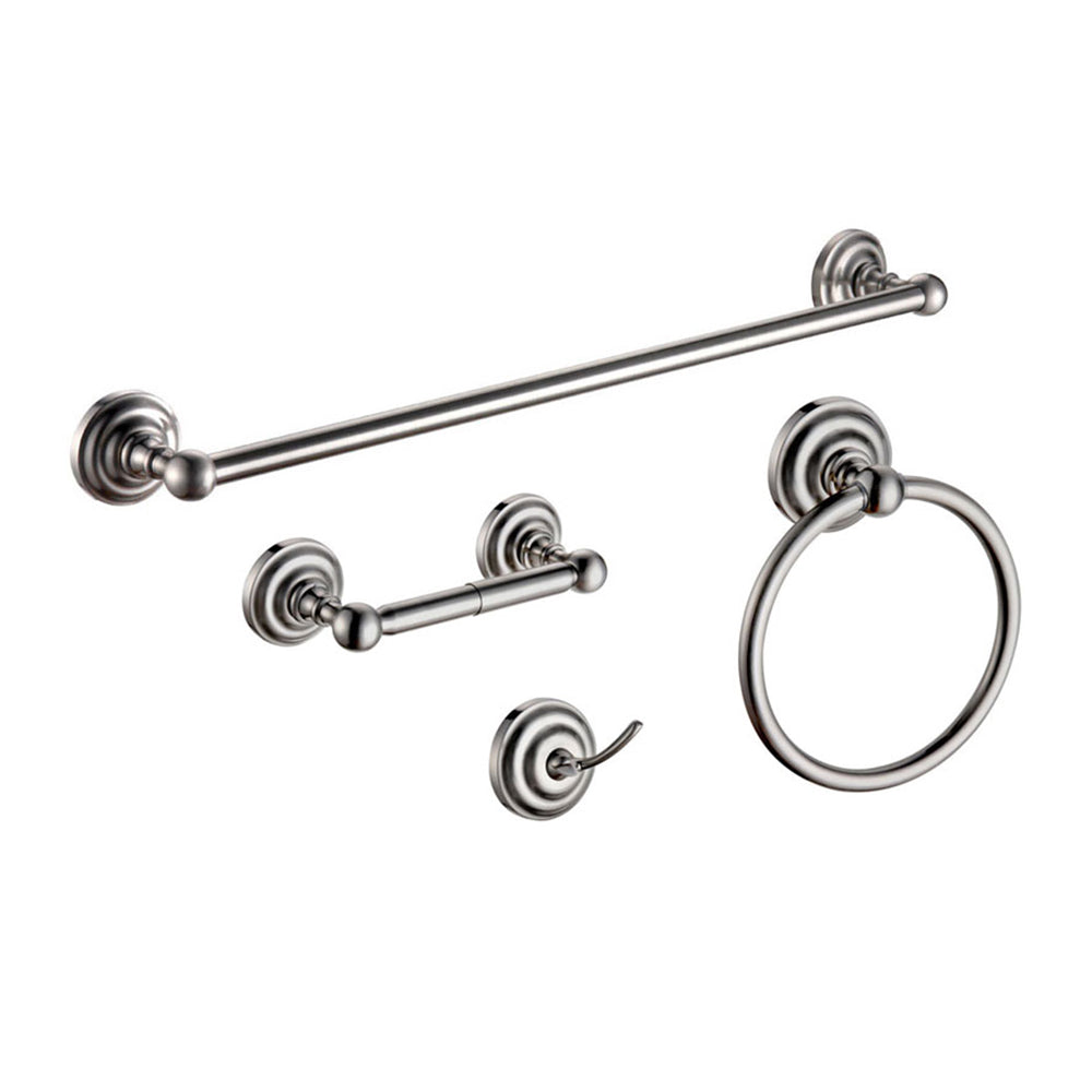 Dowell 1003 41 four piece circular/rounded design bathroom accessory set is an ideal way to upgrade any bathroom or powder room. Available in brushed nickel and oil rubbed bronze and made with zinc alloy and stainless steel, this set is a durable and attractive way to display towels, tissues, etc.