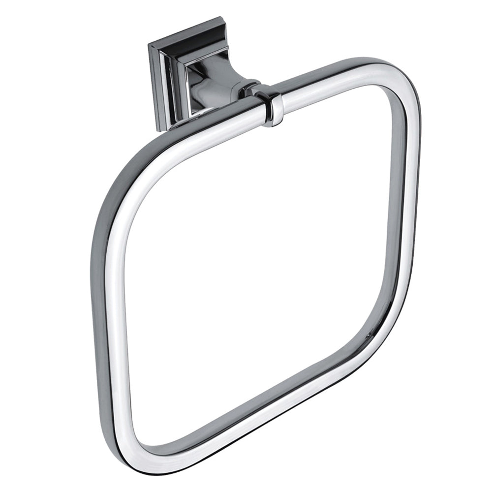 Dowell 1001 06 wall-mounted towel ring features a sleek and minimalist design. Made from brass and available with either a polished chrome or brushed nickel finish, it adds a contemporary touch to any bathroom decor. The towel ring has a gently squared shape with rounded corners, providing both aesthetic appeal and functional support for hand towels or small bath towels. The sturdy mount ensures secure installation, while the open-ended design allows for easy towel access and replacement. Perfect for bathrooms aiming for a clean, modern look.