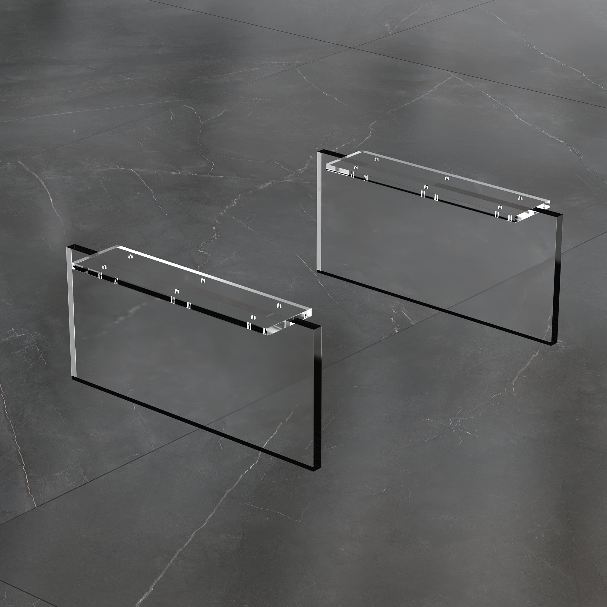 Dowell 7009 rectangular clear acrylic legs are versatile and stylish, perfect for enhancing various furniture pieces. Crafted from durable acrylic 5/8" thick transparent acrylic they provide sturdy support for bathroom vanities, tables, benches, desks, and more. Their sleek, minimalist design adds a contemporary touch, blending seamlessly with different decor styles. Easy to install with pre-drilled holes, these legs offer a quick and simple way to refresh your furniture, making them an ideal choice for DIY projects and home renovations.