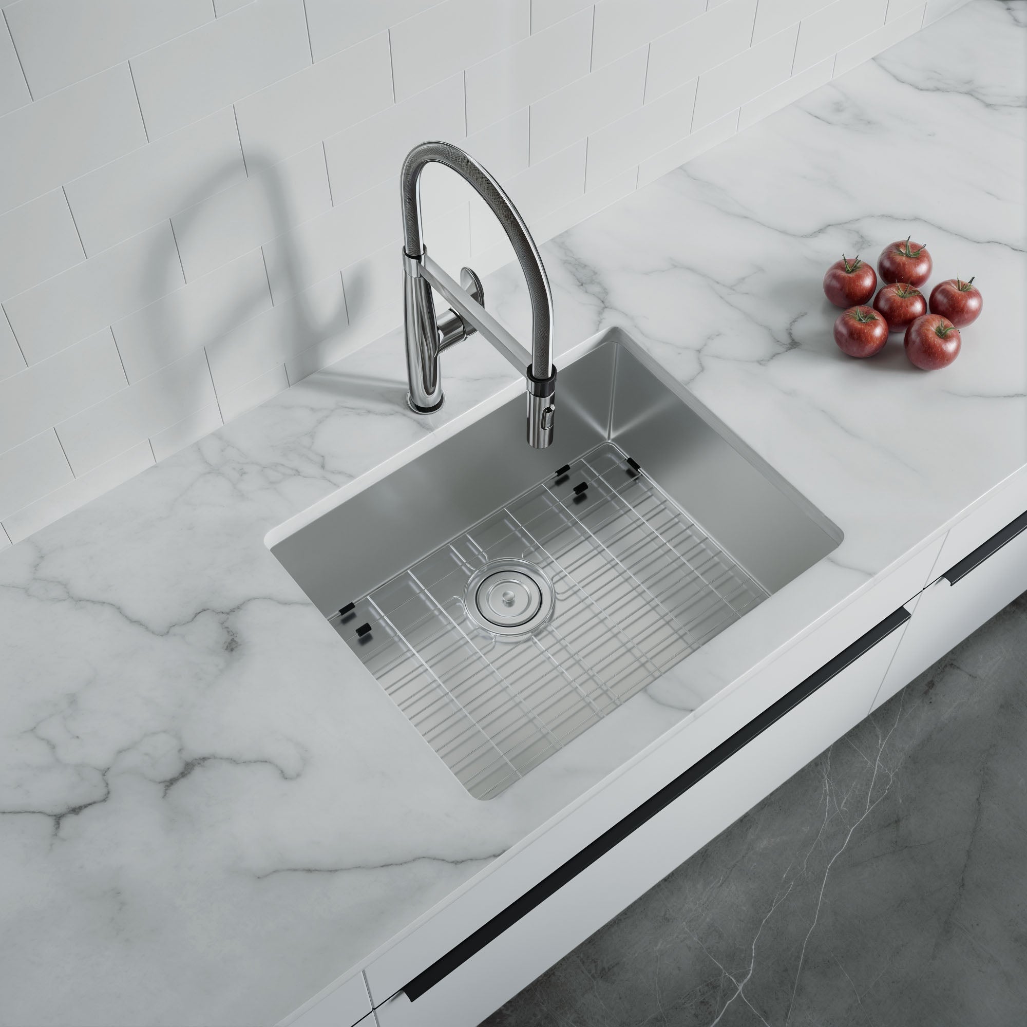 The Dowell 6002 Series 23" L x 18" W Handcrafted Undermount Kitchen Sink offers a professional style for the home. Crafted from premium 18-gauge, 304 stainless steel, its scratch-resistant satin finish adds both style and resilience, keeping the sink beautiful through years of daily use. Designed with an 9" deep basin, it provides generous space for large cookware, baking sheets, and everyday dishwashing. To ensure a quieter kitchen experience, the sink is fully undercoated and fitted with sound-deadening pads, reducing noise and vibration.