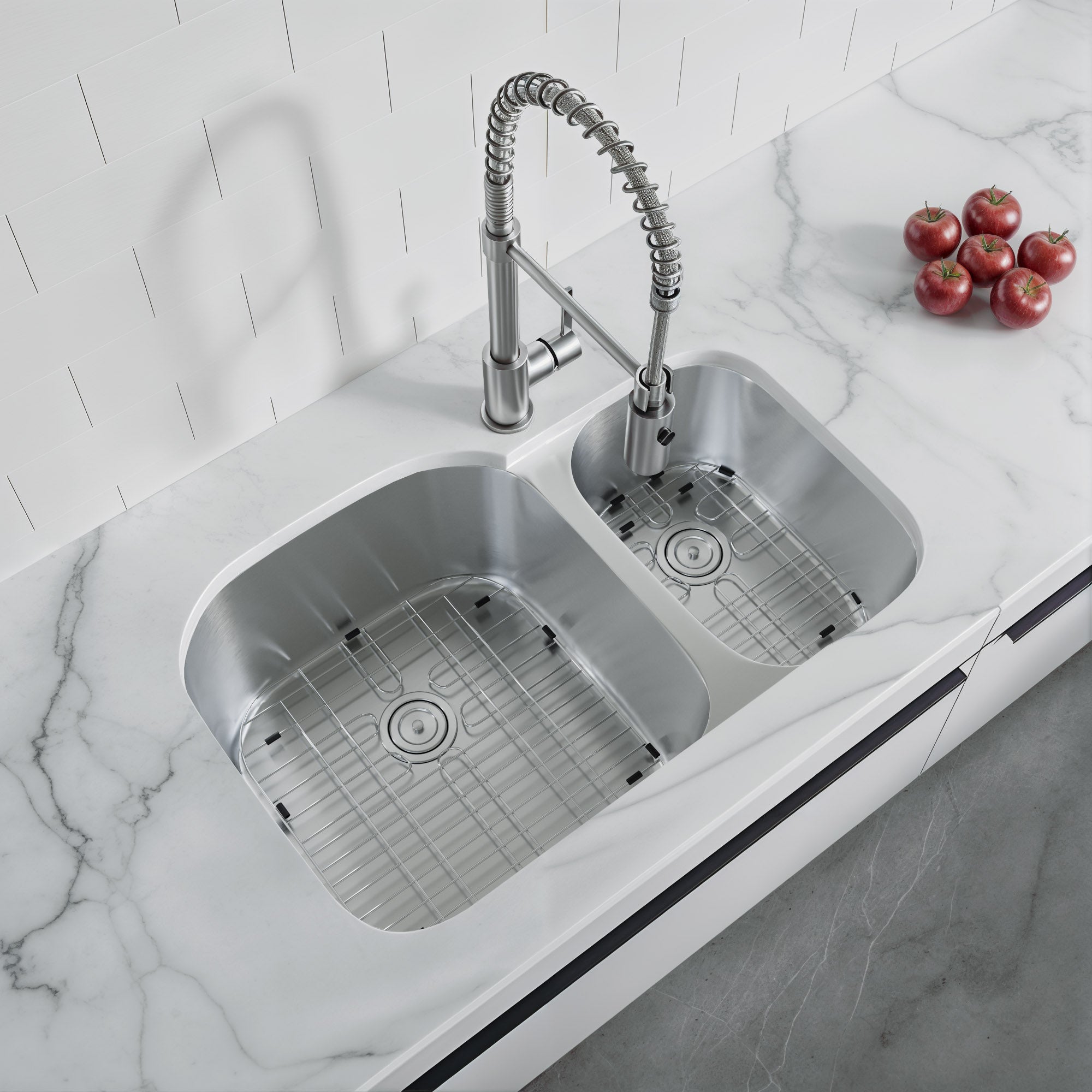 Dowell 6001 undermount kitchen sinks offer a professional style for the home with easy-to-clean small radius curved corners. Made of thick, high quality 18/16-gauge stainless steel with a satin finish, the 9" deep bowl allows you to soak and clean large cookware and bakeware while the 7"deep bowl can be used to soak and clean smaller items. This space-saving kitchen sink features a sound-absorbing pads that significantly reduce noise and vibration during use.