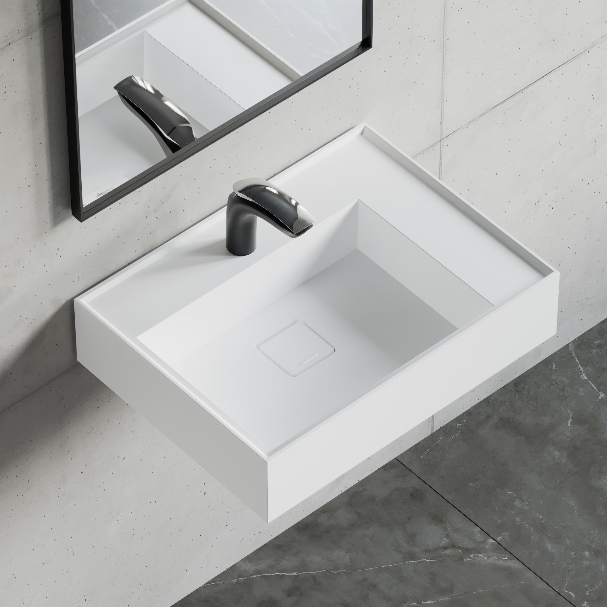• DURABLE CONSTRUCTION: Made from Premium Quality resin stone, this wall-mounted bathroom sink is strong and durable, able to resist scratches, chips, and fading over time.